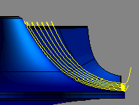 • Bước 2: lần lượt tiến hành gia công thô, gia công tinh và các góc lượn cho một cánh theo các chu trình tiêu chuẩn. Tất cả các bước gia công này đều dựa trên nhóm bề mặt đã tạo ở bước 1 nên người lập trình không cần chọn lựa từng bề mặt riêng lẻ.